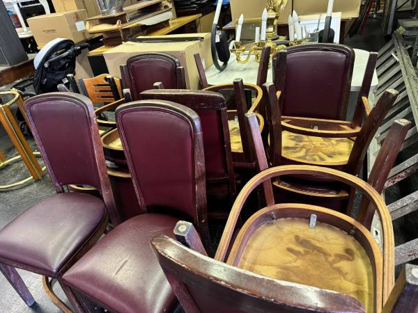 Commercial grade burgundy dining chairs they need a little TLC as seen in the pictures. These chairs are heavy. $20 each or all 10 for $190